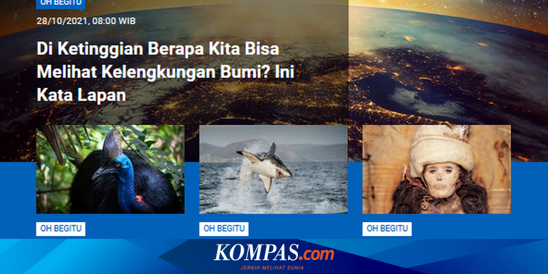 KOMPAS.com - Bumi itu bulat. Pembahasan terkait di ketinggian berapa kita bisa melihat kelengkungan Bumi pun menjadi salah satu berita populer Sains.